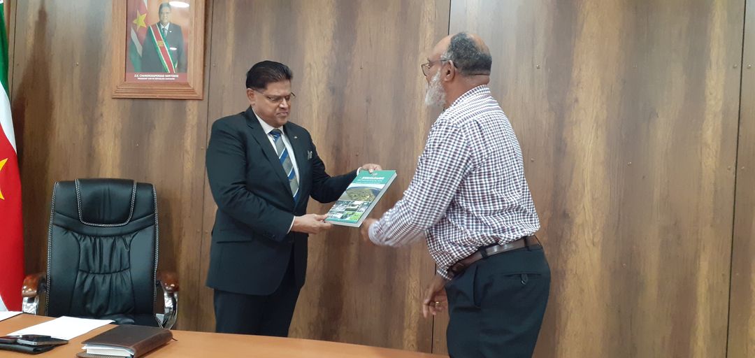 Aan het eind van het gesprek overhandigde voorzitter Harrold Sijlbing een exemplaar van het nominatiedossier aan de president.