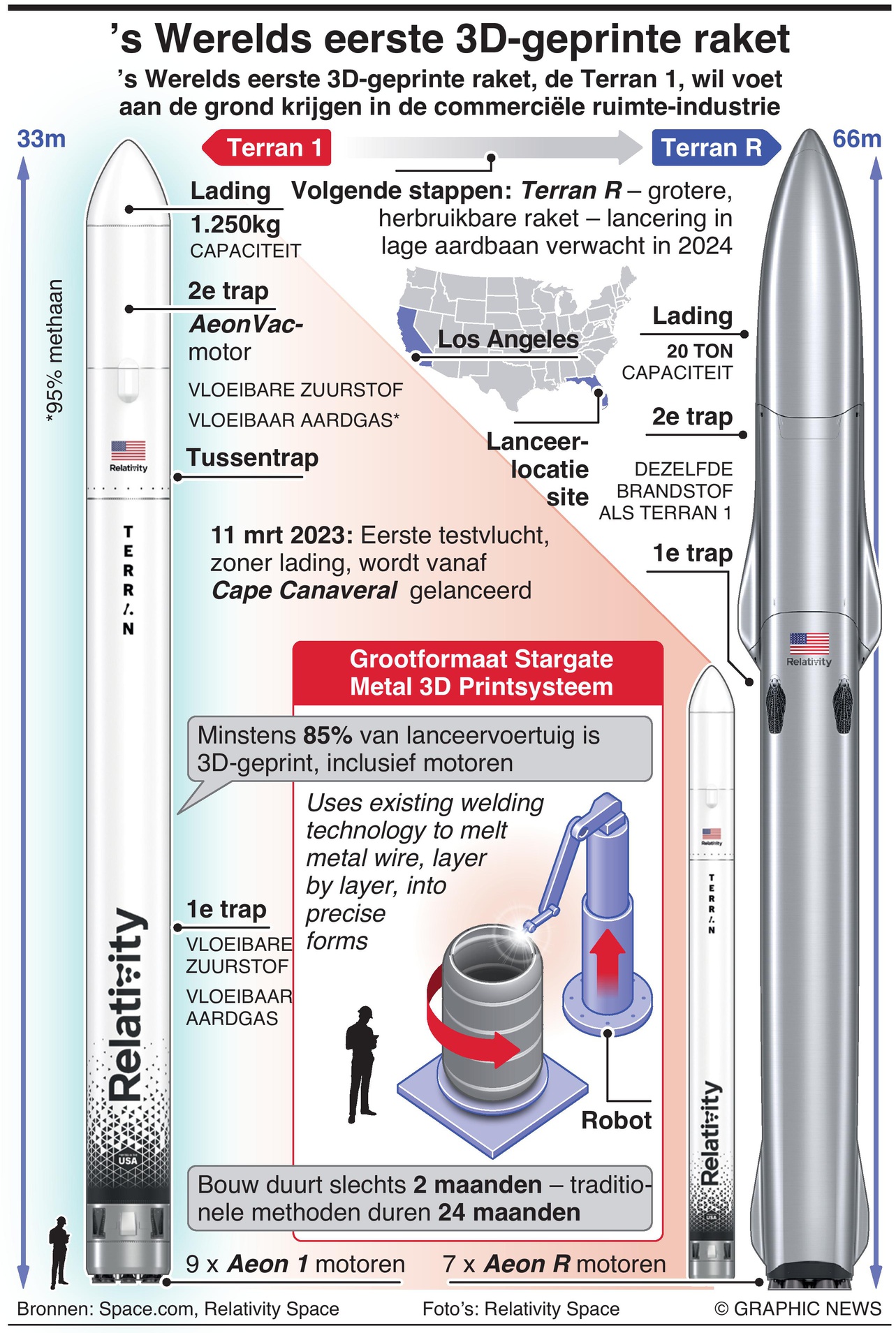 11 maart 2023 – ’s Werelds eerste 3D-geprinte draagraket, Terran 1, wordt gelanceerd vanaf Cape Canaveral door een startup die voet aan de grond wil krijgen in de commerciële ruimtevaartindustrie.