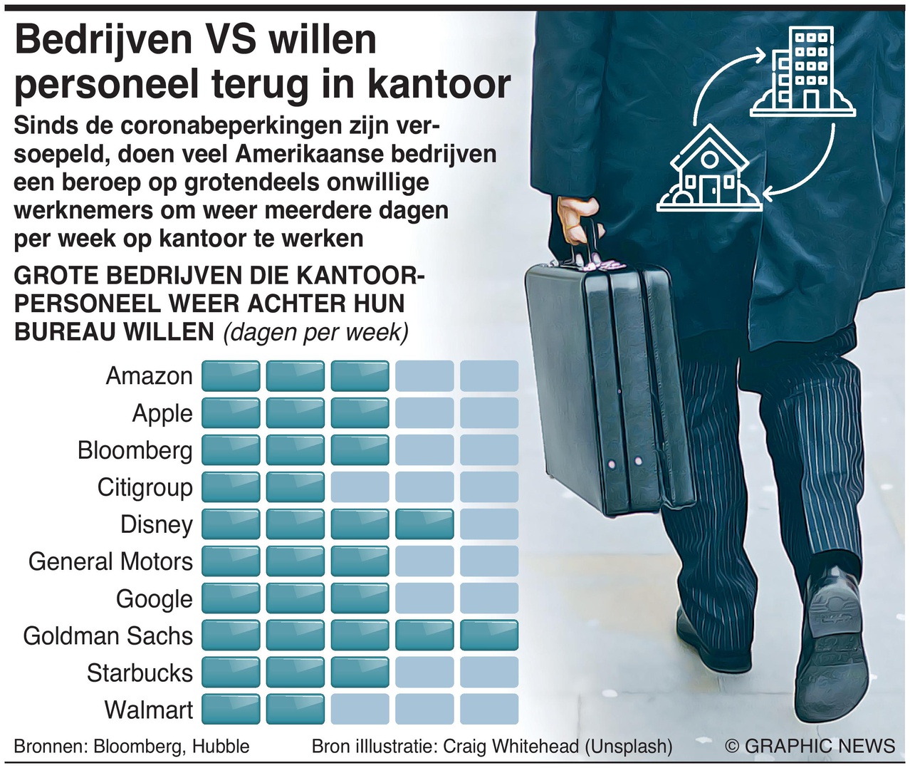 Sinds de versoepeling van de Covid-19-beperkingen, roepen veel Amerikaanse bedrijven werknemers die grotendeels onwillig zijn op om weer meerdere dagen per week vanuit kantoor te werken.