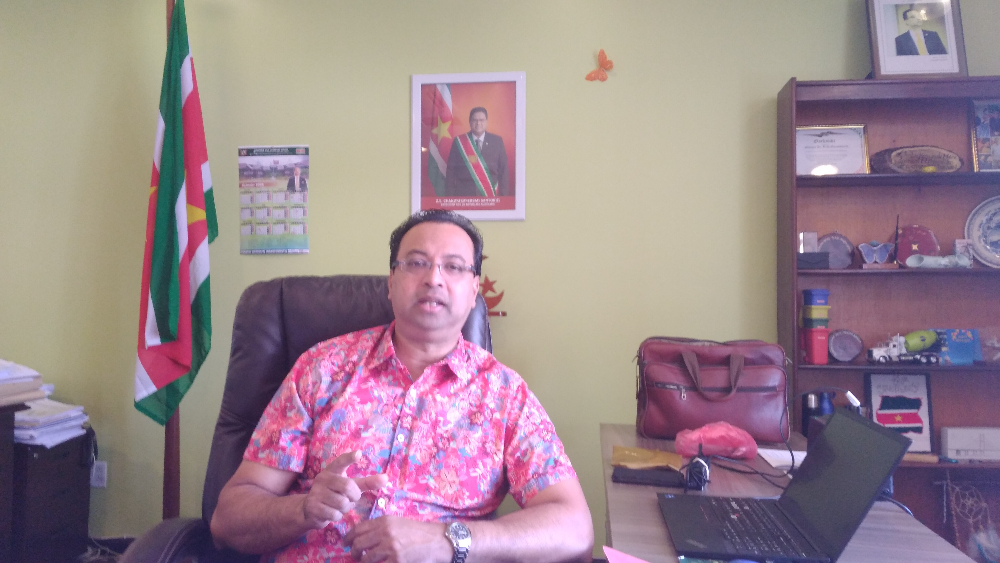 Minister Nurmohamed: “Bermen, trottoirs moeten obstakelvrij worden gehouden. Maar, dat wordt niet nageleefd. De politie kan in het belang van de veiligheid optreden. De districtscommissaris idem dito en milieu autoriteiten kunnen zich ook van zich laten horen.”