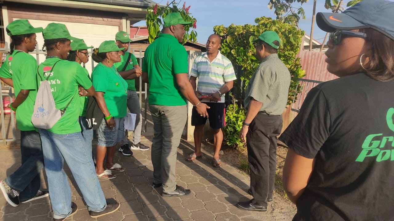 Tijdens het eerste veldbezoek zijn mensen huis aan huis bezocht, waarbij iedereen in de gelegenheid werd gesteld om tal van onderwerpen inzake de erbarmelijke situatie in het land en de plannen van de groene partij te bespreken.