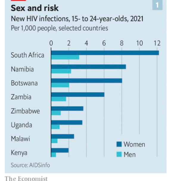 Relaties tussen adolescenten en oudere mannen zijn een belangrijke oorzaak van nieuwe HIV-infecties wereldwijd, met name in Oost-en Zuid-Afrika. In plaats van gedragsverandering, ligt de oplossing in farmacologie in de vorm van profylactische (PrEP) medicijnen. Nieuwe en zeer effectieve PrEP-regimes voor vrouwen worden ontwikkeld en hiermee zou de HIV-epidemie in Afrika sterk kunnen verminderen. Verschillende programma’s om de gedragsverandering aan te pakken zijn tot dusver onsuccesvol gebleken.(The Economist)