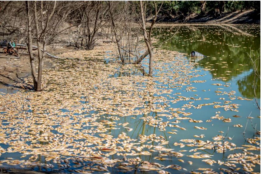 Het Department of Primary Industries in de staat New South Wales zei dat de vissterfte samenviel met een hittegolf die een systeem onder druk zette dat te maken heeft gehad met extreme omstandigheden door grootschalige overstromingen.
