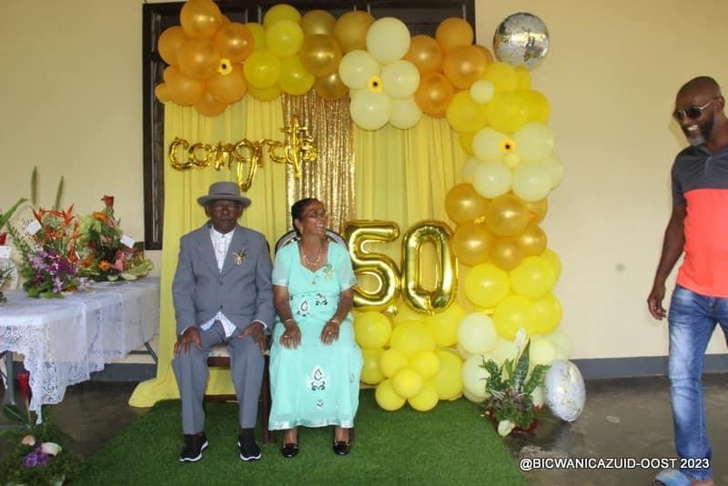 Het echtpaar Nokhai-Bhattoe te Domburg heeft deze dagen hun 50-jarig huwelijk gevierd met visite van overheidsvertegenwoordigers. De heer Nokhai was vroeger timmerman en houdt van sigaren roken, voetbal kijken en kippen kweken.