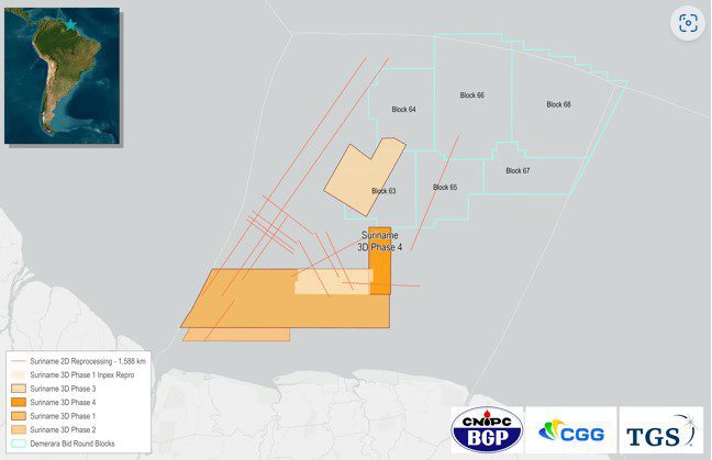 Wereldwijde leverancier van energiegegevens en -intelligentie TGS heeft samen met de geotechnische data dienstverleners CGG en BGP fase IV van zijn seismische diepwater onderzoek voor de kust van Suriname voltooid, zo meldt OilNow. De definitieve gegevens van het onderzoek zullen later dit jaar beschikbaar zijn.”Suriname blijft een cruciale rol spelen bij het vergroten van de beschikbaarheid van hoogwaardige gegevens in de zuidelijke Atlantische Oceaan, een prioriteit voor TGS”, aldus David Hajovsky van het bedrijf.