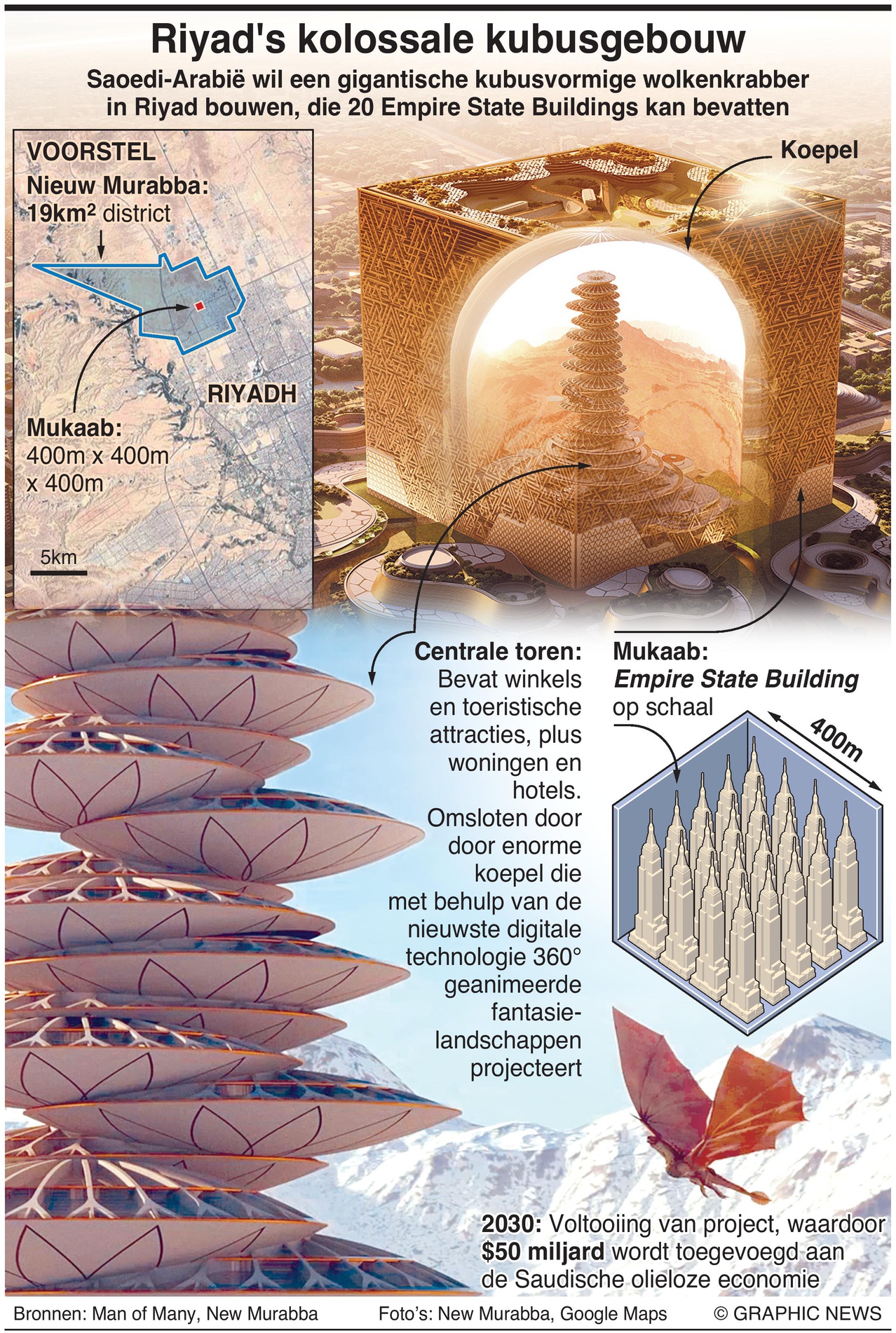 De Mukaab wordt een reusachtige kubus, 400 meter lang in elke dimensie, met een vloeroppervlak van 2 miljoen vierkante meter – geschikt voor 20 Empire State Buildings.