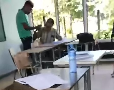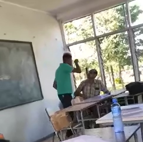 Op de beelden is te zien dat de leraar de leerling herhaaldelijk vraagt om afstand te nemen en naar zijn plaats te gaan. Ook wordt hem gevraagd om niet brutaal en disrespectvol te zijn. “Je moet niet hier staan”, zegt de leraar steeds.
