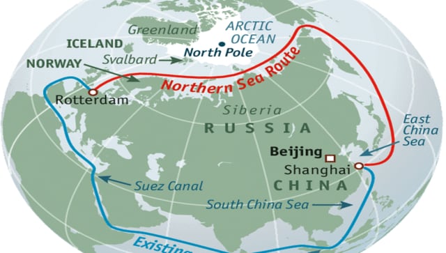 India en Rusland overwegen een scheepvaartroute over de Noordelijke IJszee te openen om Zuidoost-Azië met Europa te verbinden.