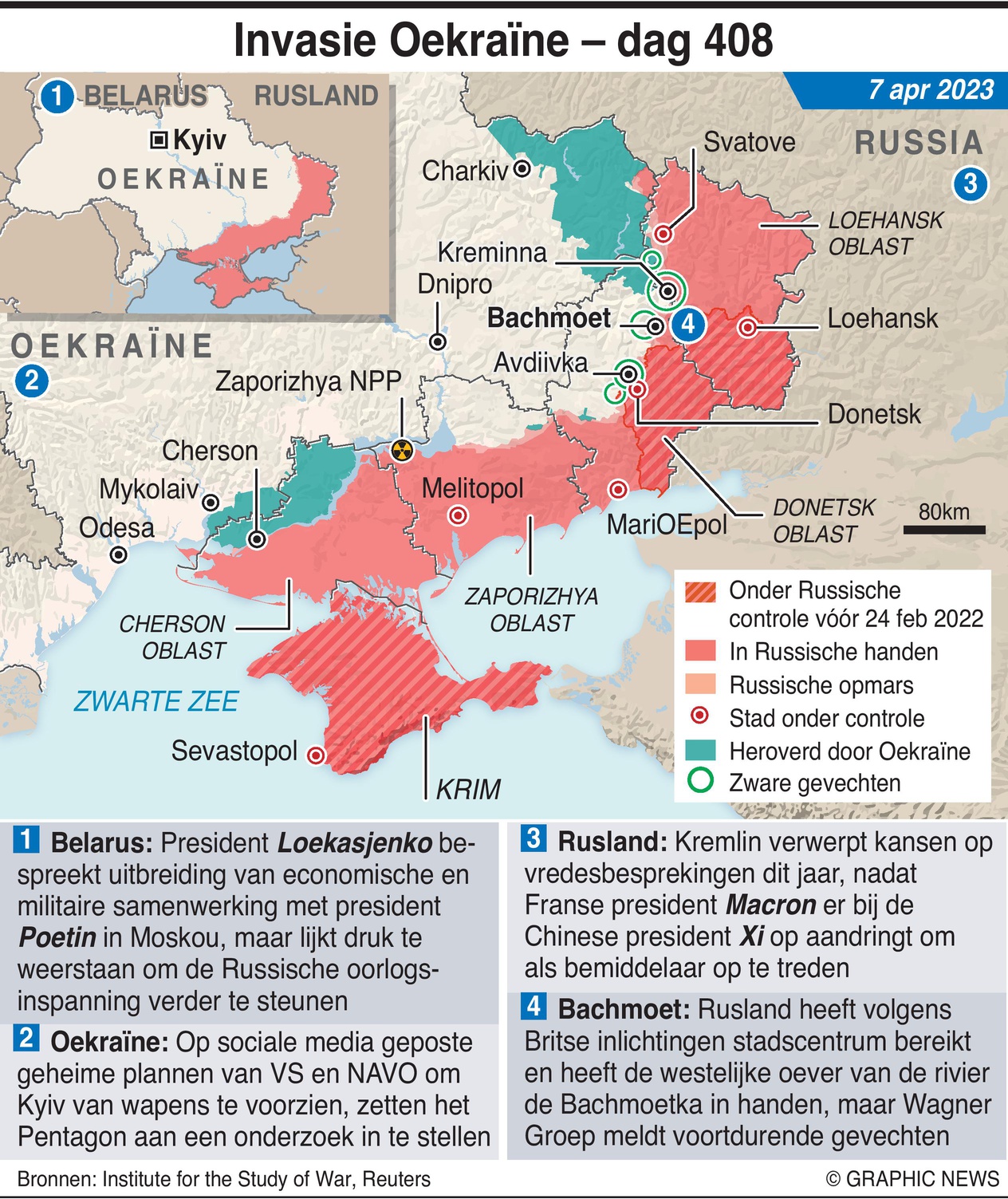 7 april 2023 – President Loekasjenko van Wit-Rusland ontmoette de Russische president Poetin in Moskou om de uitbreiding van de economische en militaire samenwerking te bespreken, maar lijkt waarschijnlijk weerstand te bieden aan de druk om de Russische oorlogsinspanningen op dit moment verder te ondersteunen.