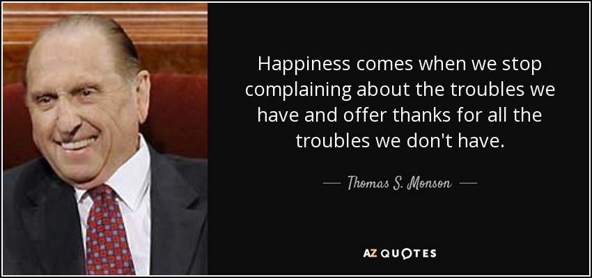 “Happiness comes when we stop complaining about the troubles we have and offer thanks for all the troubles we don’t have.”