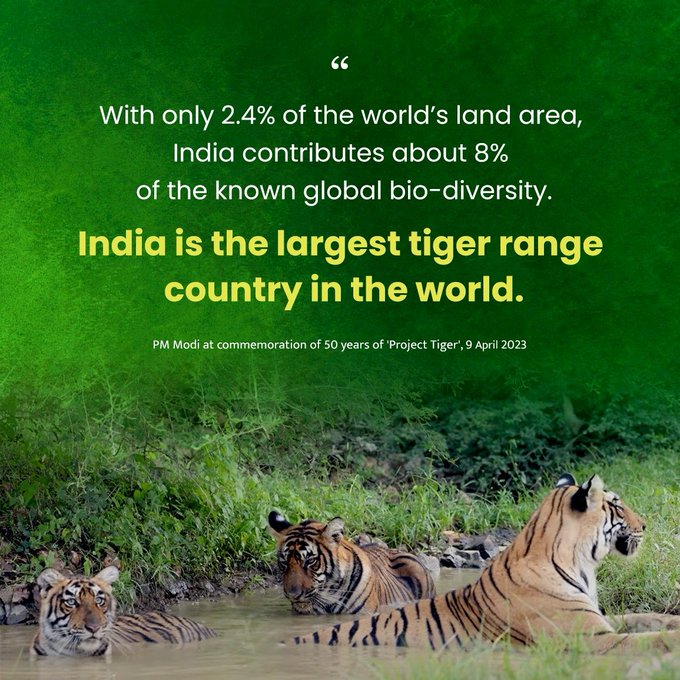 De premier benadrukte dat India niet alleen de tijgerpopulatie heeft behoed voor achteruitgang, maar ook een ecosysteem heeft geboden waar tijgers kunnen gedijen. De premier was blij dat India in het 75e jaar van de onafhankelijkheid van India de thuisbasis is van 75% van de tijgerpopulatie in de wereld. Het is ook toeval, vervolgde de premier, dat de tijgerreservaten in India 75.000 vierkante kilometer land beslaan en dat de afgelopen tien tot twaalf jaar de tijgerpopulatie in het land met 75 procent is toegenomen.