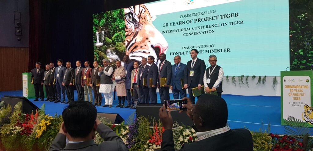De premier van India, Shri Narendra Modi, heeft afgelopen weekend het programma ‘Herdenking van 50 jaar Project Tiger’ ingehuldigd aan de Mysuru University in Mysuru, Karnataka. De premier lanceerde ook de International Big Cats Alliance (IBCA). Hij bracht de publicaties uit – ‘Amrit Kaal Ka Vision For Tiger Conservation’, een samenvattend rapport van de 5e cyclus van Management Effectiveness Evaluation of Tiger Reserves, verklaarde tijgeraantallen en bracht het samenvattende rapport uit van All India Tiger Estimation (5e cyclus). Hij bracht ook een herdenkingsmunt uit ter gelegenheid van de voltooiing van 50 jaar Project Tiger.