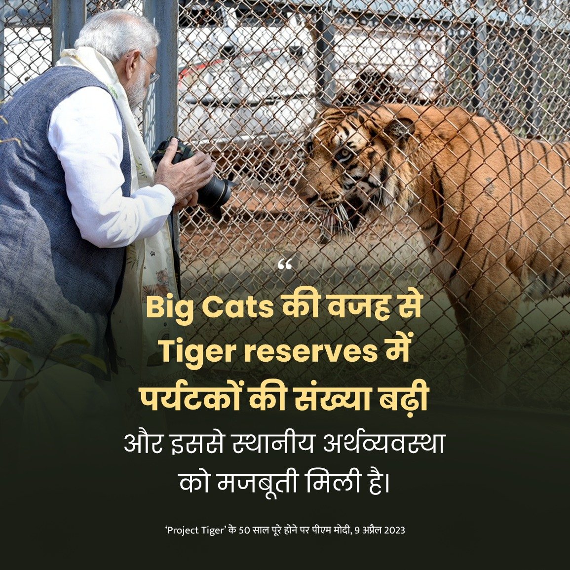 De premier benadrukte dat India niet alleen de tijgerpopulatie heeft behoed voor achteruitgang, maar ook een ecosysteem heeft geboden waar tijgers kunnen gedijen. De premier was blij dat India in het 75e jaar van de onafhankelijkheid van India de thuisbasis is van 75% van de tijgerpopulatie in de wereld. Het is ook toeval, vervolgde de premier, dat de tijgerreservaten in India 75.000 vierkante kilometer land beslaan en dat de afgelopen tien tot twaalf jaar de tijgerpopulatie in het land met 75 procent is toegenomen.