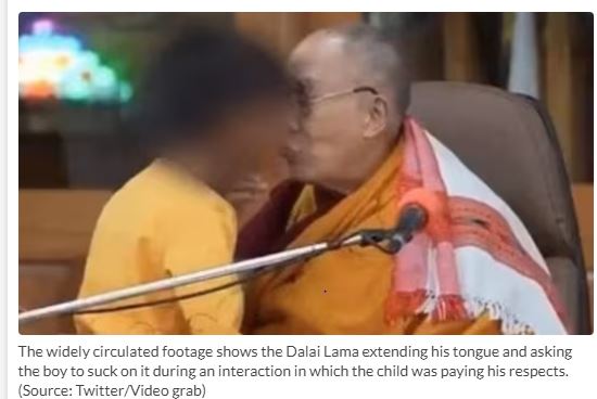 Een video waarin te zien is hoe de Dalai Lama een jongen op zijn lippen kust en het kind vervolgens vraagt om “op zijn tong te zuigen” heeft voor veel ophef gezorgd.