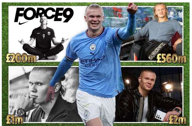 Het fortuin van Haaland, van £ 200 miljoen Nike-sponsorovereenkomst tot £ 900.000 per week.