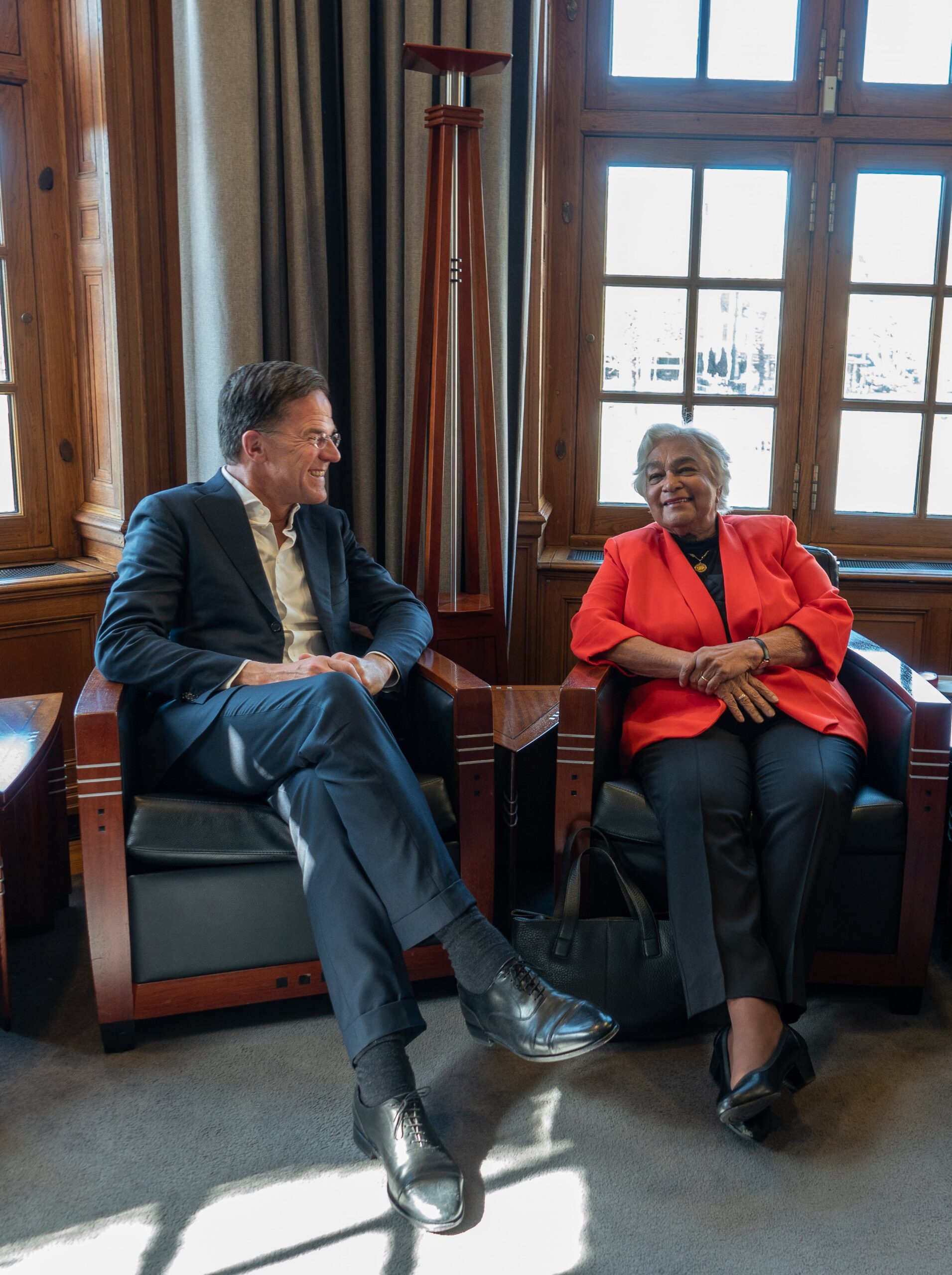 Hij ontving McLeod p[ het ministerie van Algemene Zaken in Den Haag. “Haar kennis over het slavernijverleden in Suriname is indrukwekkend en klinkt door in al haar werk, zoals in haar bekende boek ‘Hoe duur was de suiker?’ Het is belangrijk dat we het gesprek over het slavernijverleden breed blijven voeren en samen invulling geven aan de komma na de excuses die ik in december namens de regering mocht uitspreken”, aldus de Nederlandse premier.