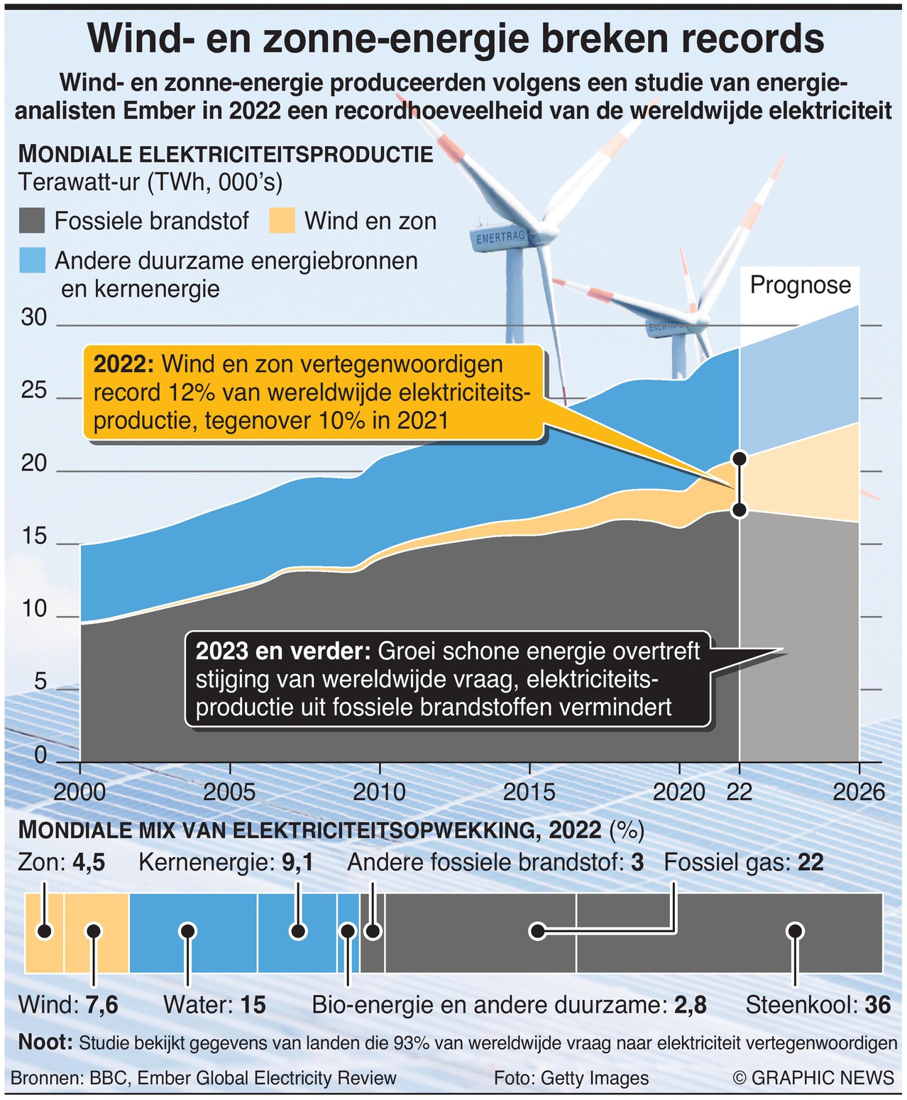 Wind en zon produceren nu 12% van de wereldwijde elektriciteit met voldoende windturbines toegevoegd in 2022 om bijna het hele VK van stroom te voorzien, aldus de BBC.