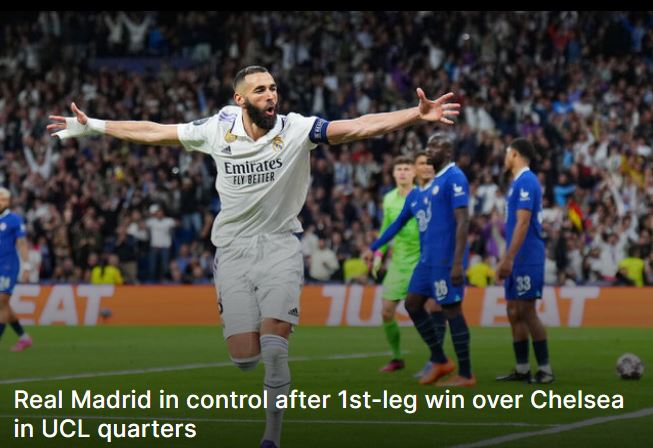 Real Madrid heeft de touwtjes in handen na overwinning in eerste etappe op Chelsea in kwartfinales UEFA Champions League. Karim Benzema en Marco Asensio scoorden voor Real Madrid om een 2-0 voorsprong te nemen in de kwartfinale-wedstrijd. Ondanks dat Madrid de wedstrijd onder controle had, was het Carlo Ancelotti die de touwtjes in handen nam, met behulp van ervaren middenvelders Toni Kroos en Luka Modric. Chelsea heeft het moeilijk gehad in de Premier League, maar N’Golo Kante gaf een positief optreden tegen Madrid.