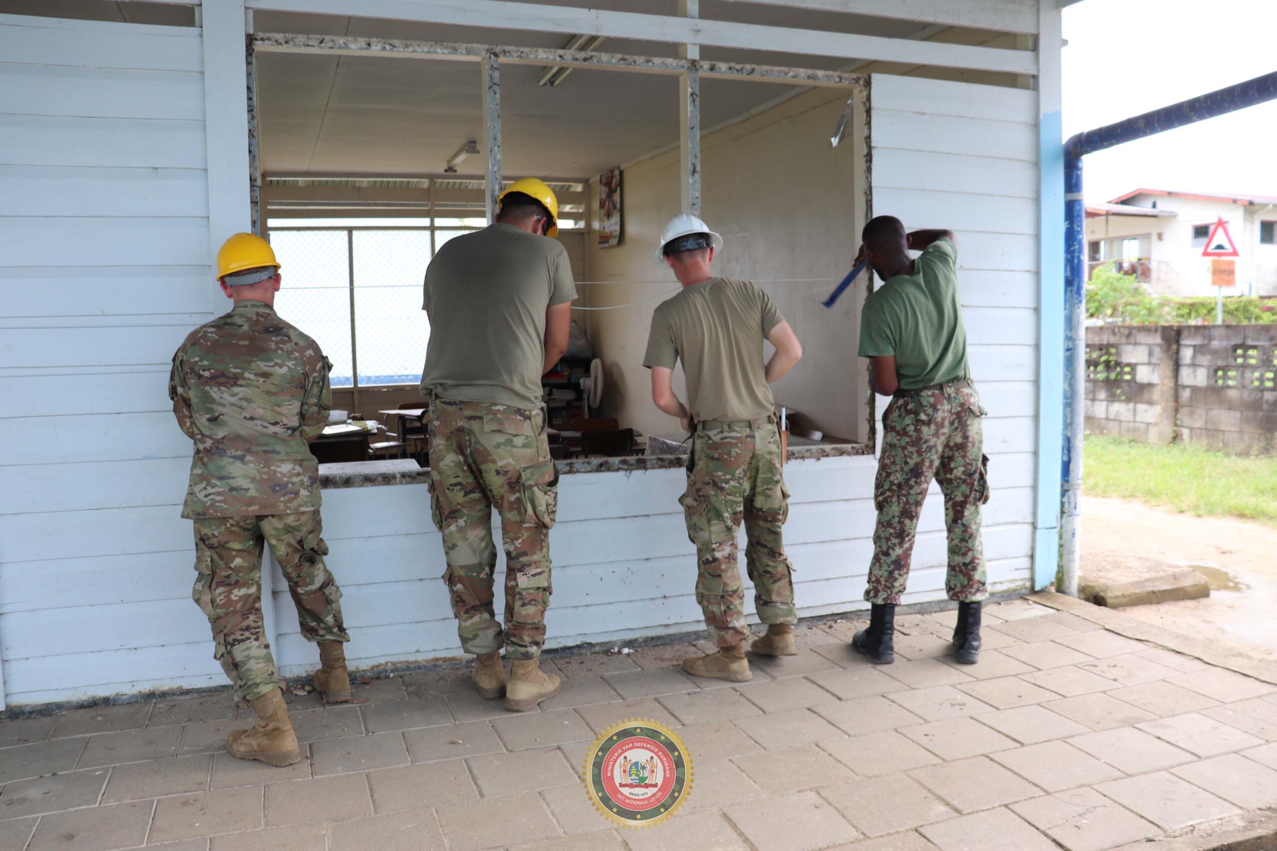 Dertig leden van de South Dakota National Guard (SDNG) zijn deze dagen in Suriname om gedurende twee weken samen met Surinaamse militairen van het Commando Civiel Technische Werken (CCTW) renovatiewerkzaamheden uit te voeren aan de OS Blauwgrond, OS Mariënburg en OS Brokopondo. Het project, dat bekend staat als de Vertical Engineer Project, is onderdeel van het State Partnership programma tussen het ministerie van Defensie en de SDNG.