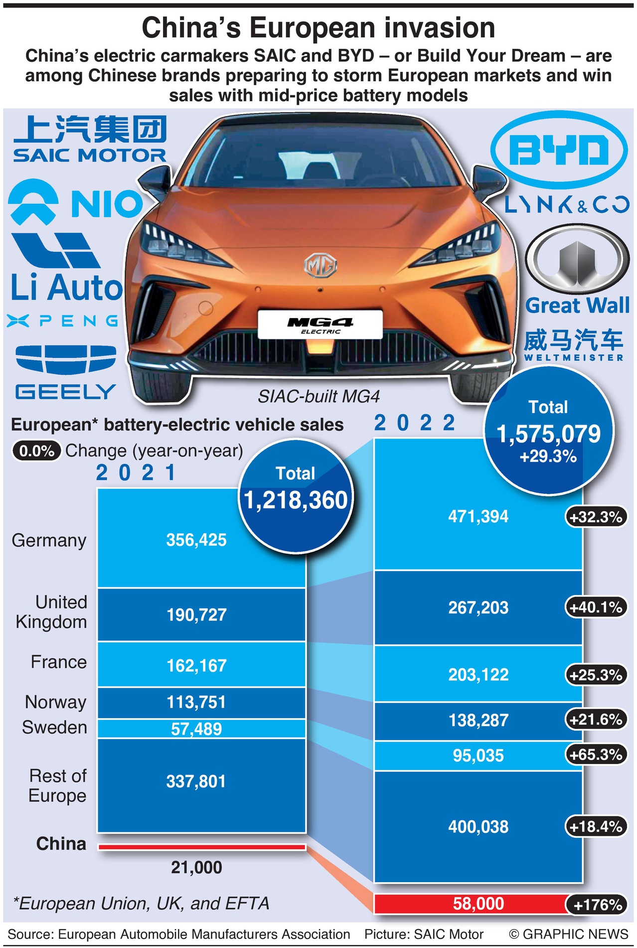 18 april 2023 – De Chinese fabrikanten van elektrische auto’s SAIC en BYD – of Build Your Dream – behoren tot de Chinese merken die zich voorbereiden om de Europese markten te bestormen en verkoop binnen te halen met batterijmodellen uit het middensegment.