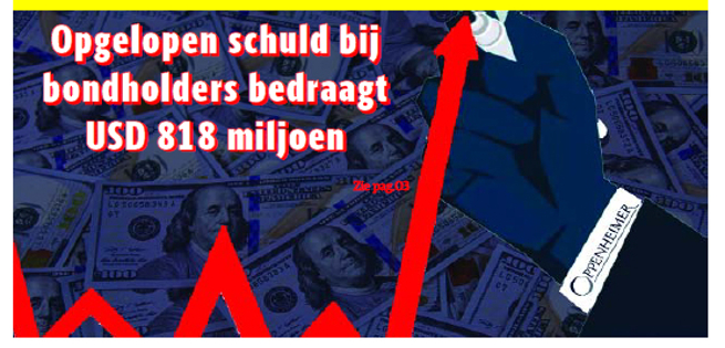 De schuld van Suriname bij de zogeheten Oppenheimer bondholders is per ultimo december 2022 opgelopen tot een bedrag van USD 818 miljoen, inclusief achterstallige rente en aflossingsbetalingen van USD 230 miljoen. Dezer dagen is bekend geworden, dat de Surinaamse regering en de bondholders op het punt staan overeenstemming te bereiken over de herschikking van deze schulden.