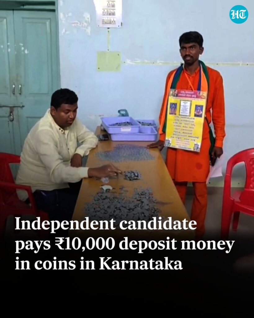 Een onafhankelijke kandidaat uit het Yadgir-kiesdistrict van Karnataka betaalde zijn aanbetaling van ₹ 10.000 (india rupee)volledig in munten om nominaties in te dienen voor de verkiezingen.