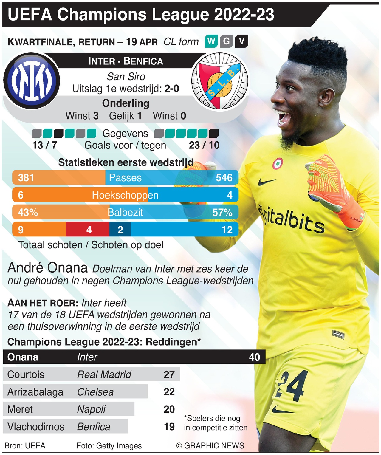 19 april 2023 – UEFA Champions League kwartfinale tweede etappe-wedstrijden, inclusief match-ups tussen Internazionale tegen Benfica in San Siro. De winnaars nemen het in de halve finale op tegen AC Milan of Napoli.