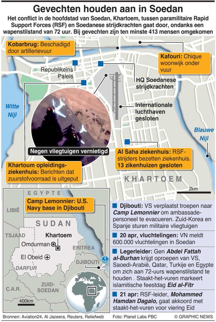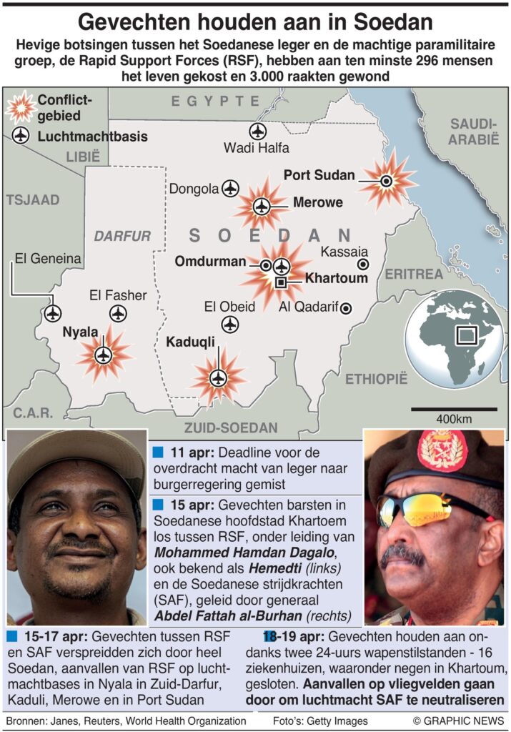 De machtsstrijd tussen het reguliere leger van Soedan en een paramilitaire strijdmacht genaamd de Rapid Support Forces (RSF) heeft geleid tot zware bombardementen in de hoofdstad, met honderden doden en duizenden gewonden.