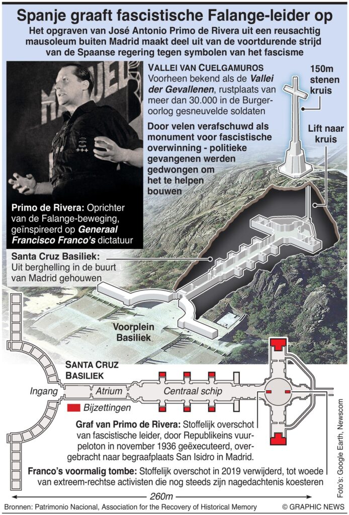 Zijn opgraving, die volgt op de verwijdering van de overblijfselen van dictator Francisco Franco in 2019, maakt deel uit van een plan om de door Franco gebouwde “Vallei van de gevallenen” om te vormen tot een gedenkteken voor de 500.000 mensen die zijn omgekomen tijdens de Spaanse burgeroorlog van 1936-1939.