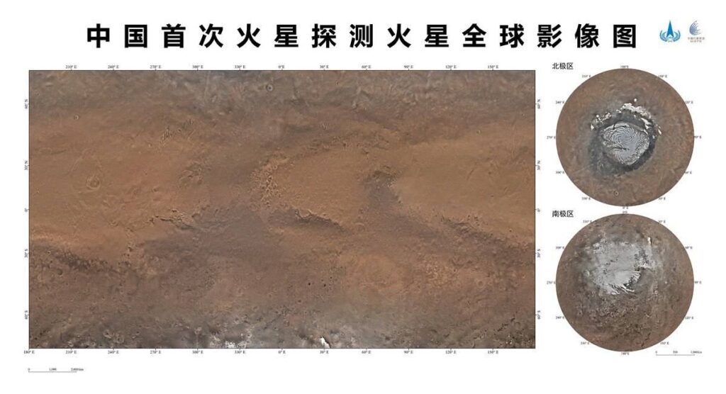 China heeft zijn eerste kaart van het hele oppervlak van Mars gepubliceerd. De gegevens daarvoor zijn verzameld door het ruimtevaartuig Tianwen-1.