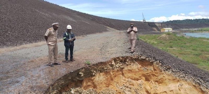Minister Amoksi legde gisteren uit, dat door de zware regen van afgelopen zondag op maandag er sprake is geweest van afkalving van een stuk talud van de onderhoudsweg aan de voet van de dam. Het water is volgens de minister niet afkomstig van de ondergrond. De situatie van afkalving van een stuk talud van de onderhoudsweg is niet zo ernstig als de foto’s die op social media rond gaan, wil doen vermoeden. Het afgekalfde taludgedeelte is ondertussen door een aannemer hersteld.