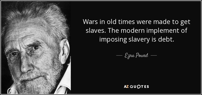 “Wars in old times were made to get slaves. The modern implement of imposing slavery is debt.”