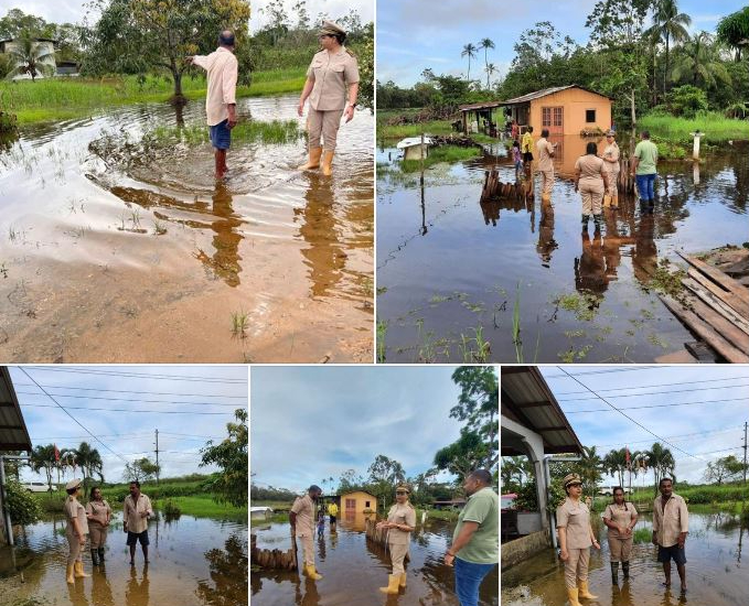 De districtscommissaris van Saramacca, Sherin Bansi-Durga, heeft vandaag, donderdag 27 april, een bezoek gebracht aan de gebieden die door de hevige regens van de afgelopen dagen onder water zijn gelopen. Zij bezocht onder andere de Debie Sahaiweg, de 5e Rijweg, Leiding 5 en 6 die afwateren in het Saramaccakanaal.