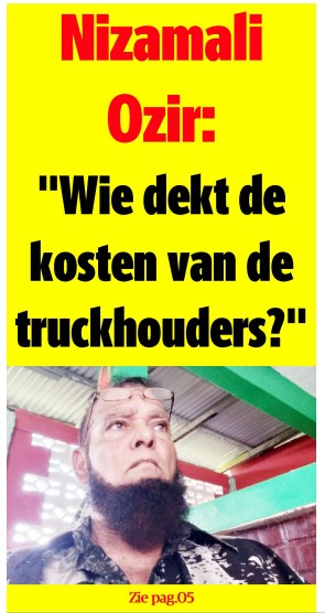 Nizamali Ozir, voorzitter van de Unie van Truckhouders en Zwaarmaterieel in Suriname, ontfermt zich over de truckhouders die het slachtoffer zijn geworden van de opstand te Pikin Saron. Ongeveer 15 trucks die hout vervoeren zijn in brand gestoken door de opstandelingen. De schade aan de trucks bedraagt ongeveer US$ 600.000.