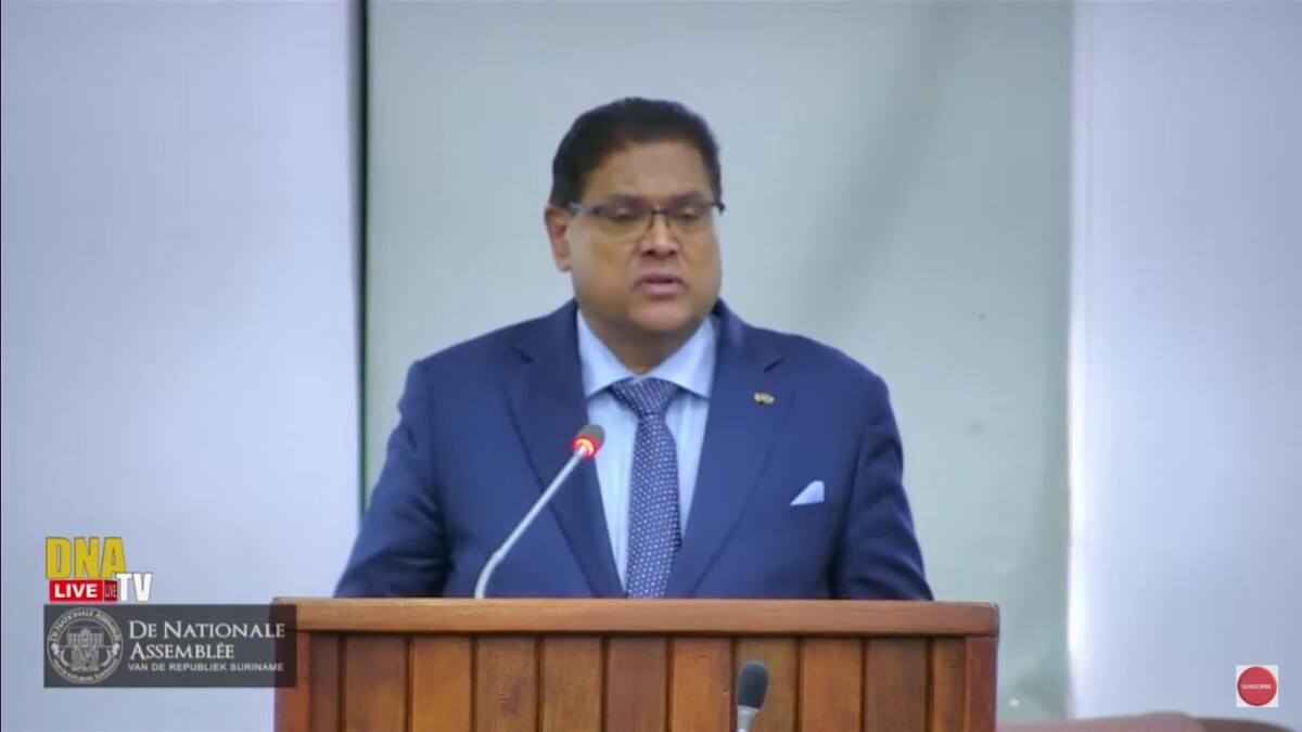 President Santokhi sprak donderdagmiddag in het parlement, waar hij informatie verschafte over het bereikte principe akkoord met de bondholders over de schuldherschikking.