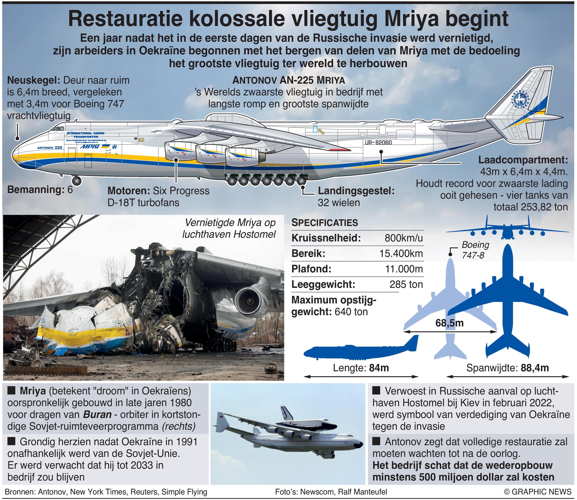 - Een jaar nadat het tijdens de eerste dagen van de Russische invasie was verwoest, zijn arbeiders in Oekraïne begonnen met het bergen van delen van Mriya met de bedoeling ’s werelds grootste vliegtuig te herbouwen.