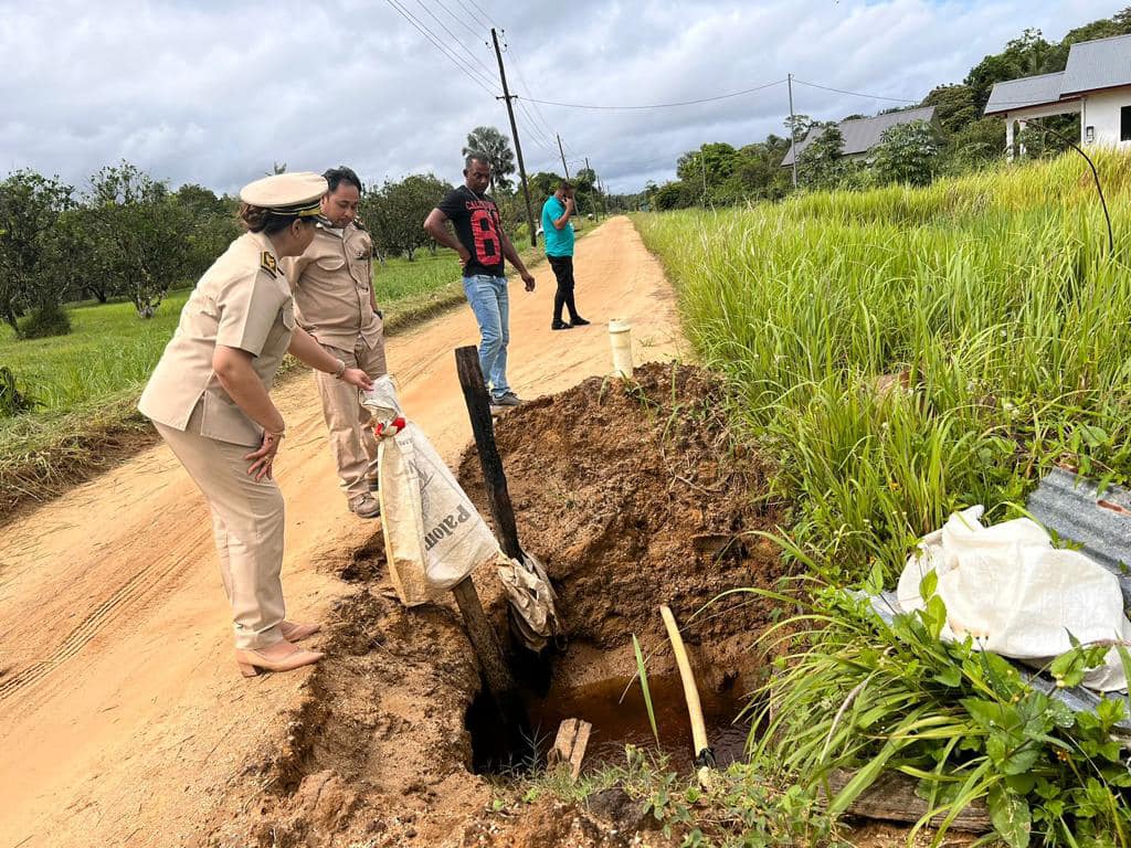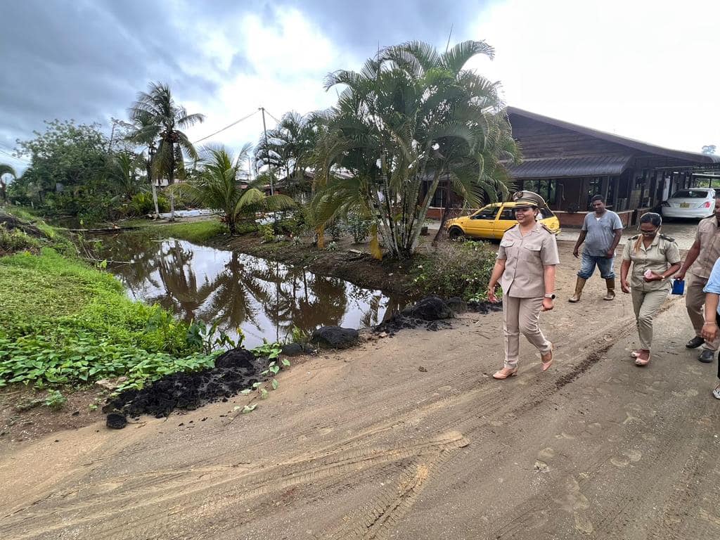 De dc heeft zich ook persoonlijk georiënteerd aan de Kampong Baroeweg waar verschuivingen van duikers onder de weg hebben plaatsgevonden. Hier heeft de dc de bouwploeg van het commissariaat terstond opdracht gegeven om het aan te pakken.