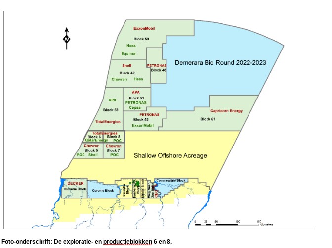 Staatsolie Maatschappij Suriname N.V. en TotalEnergies Suriname en QatarEnergy tekenden maandag 8 mei productiedelingscontracten voor offshoreblokken 6 en 8.