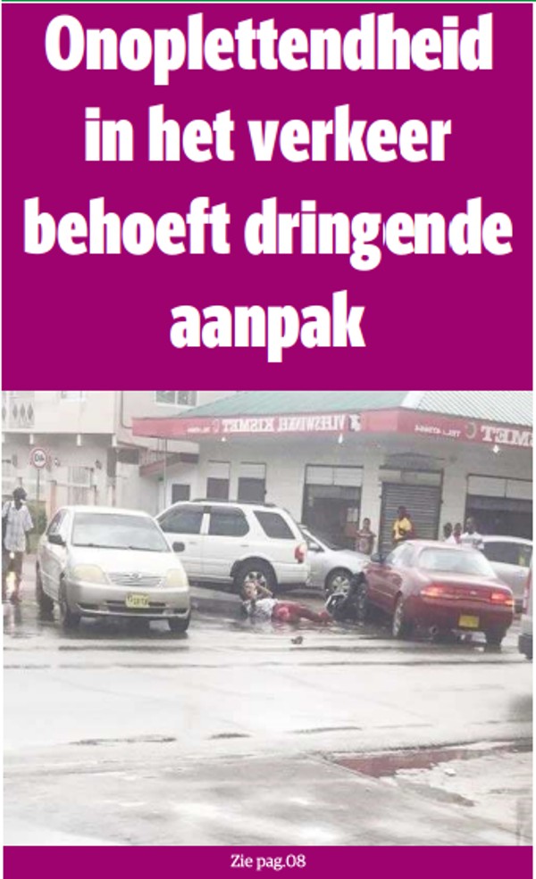 Het is opmerkelijk, dat er de laatste tijd veel verkeersongevallen zijn geweest waarbij mensenlevens te betreuren waren. Het is ook opmerkelijk, dat er zelfs in districten, zoals Nickerie, waar er niet vaak een opmerkelijke drukte op de weg is, dergeijke ongevallen zijn geweest. Afgelopen weekend hebben zich nog verkeersongevallen in Nickerie voorgedaan waarbij twee mensen zijn overleden.