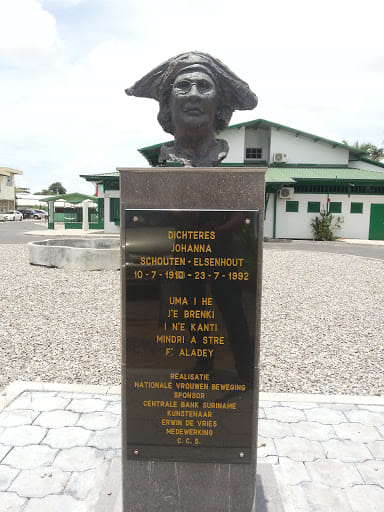 Onbekenden hebben het borstbeeld van Johanna Schouten-Elsenhout dat bij het Cultureel Centrum Suriname, CCS, aan de Henck Arronstraat in Paramaribo stond, gestolen.