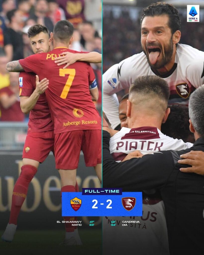 Roma had bij de rust een 1-0 achterstand tegen Salernitana in de wedstrijd in de Serie A gehad, maar in de tweede helft kwam Roma goed terug en slaagde erin om de gelijkmaker te scoren. Het duel eindigde in 2-2.