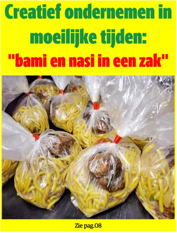 “Ik moest toen inspelen op de markt, om mijn klanten tegemoet te komen en aan de andere kant toch te kunnen verkopen. Want anders zit ik met mijn eten en leid ik dubbel verlies.” Zij besloot toen in te spelen met het oud bekende concept “bami/nasie in zak”. Die verkoopt Rine voor de helft van de normale prijs SRD 65 naast haar gewone porties in de bakjes. Vanaf de introductie van “bami/nasie in zak” is zij dagelijks al heel vroeg uitverkocht.