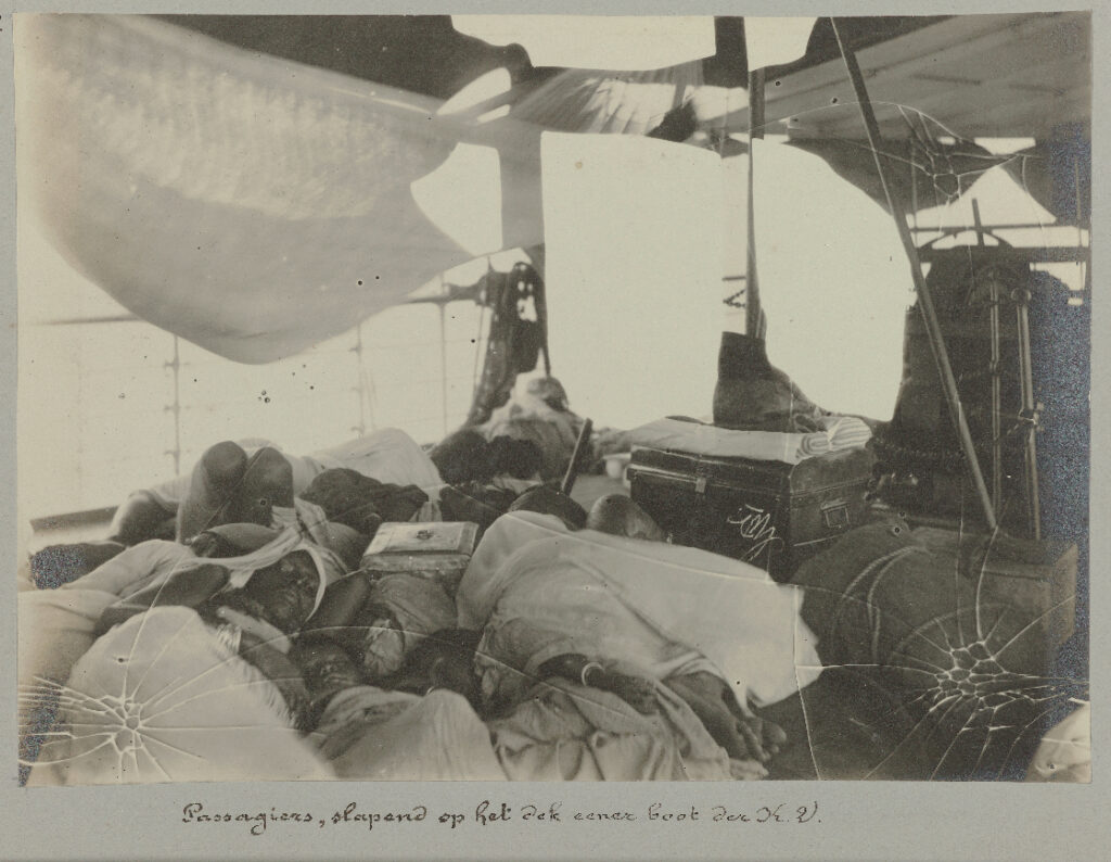 Ook is in een van de albums een bijzondere foto te zien van een groep slapende contractarbeiders op een scheepsdek.