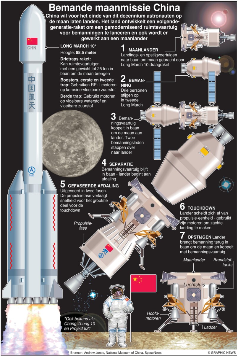 China is van plan om voor het einde van het decennium astronauten op de maan te laten landen. Het land ontwikkelt een raket van de volgende generatie om een geüpgraded ruimtevaartuig voor de bemanning te lanceren, terwijl er ook wordt gewerkt aan een maanlander.