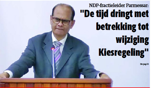 Parmessar zegt niet eraan te willen denken dat de verkiezingen die uiterlijk 25 mei 2025 moeten worden gehouden zullen worden uitgesteld, zoals enkele geluiden uit de samenleving dat willen doen geloven. “De NDP zal hemel en aarde bewegen opdat zulks niet gebeurt”, aldus fractieleider Parmessar. Hij zegt dat het belangrijk is dat tijdig en in goed overleg met elkaar de nodige wettelijke regelingen worden getroffen.