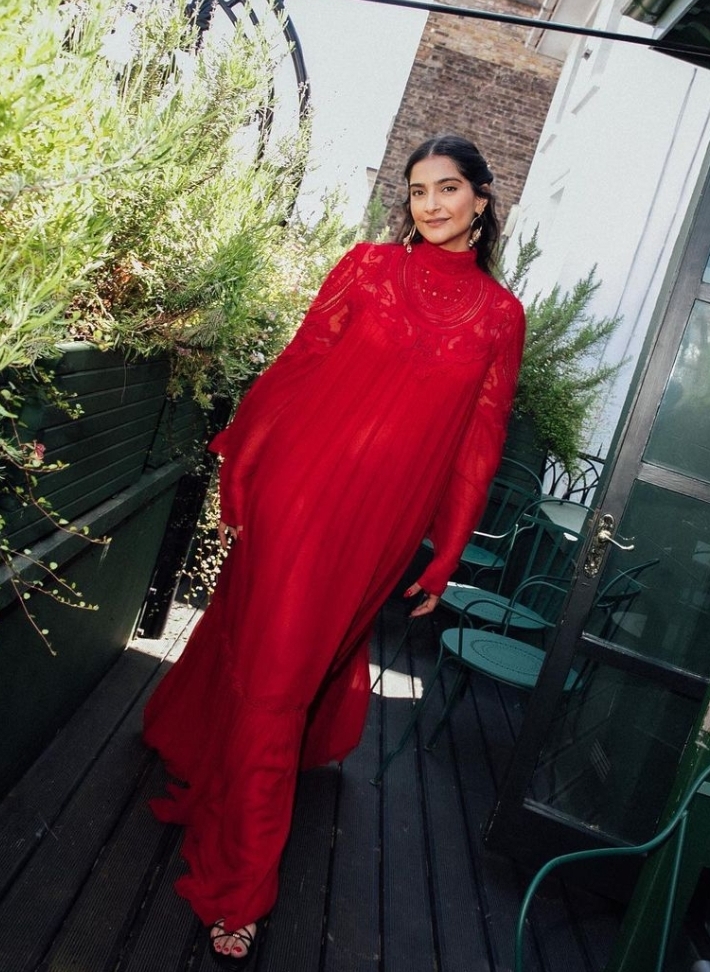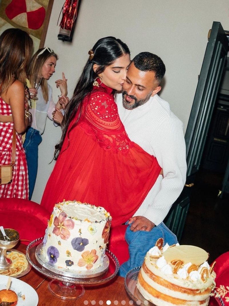 De Delhi 6-actrice zag er absoluut adembenemend uit in een betoverende rode outfit met ingewikkelde kanten details die haar natuurlijke schoonheid benadrukten. De foto’s die door Sonam werden gedeeld, legden hartverwarmende momenten vast met haar man, zoon en hun goede vrienden, terwijl ze samenkwamen om deze vreugdevolle gelegenheid te vieren.