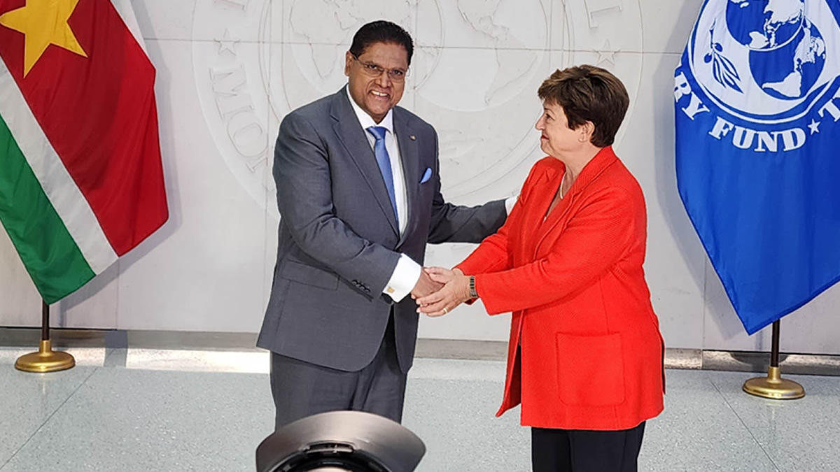 Volgens een persbericht van de Communicatie Dienst Suriname zou een ontmoeting tussen president Chandrikapersad Santokhi en de algemeen directrice van het Internationaal Monetair Fonds (IMF), Kristalina Georgieva, een doorbraak zijn geweest in de onderhandelingen.