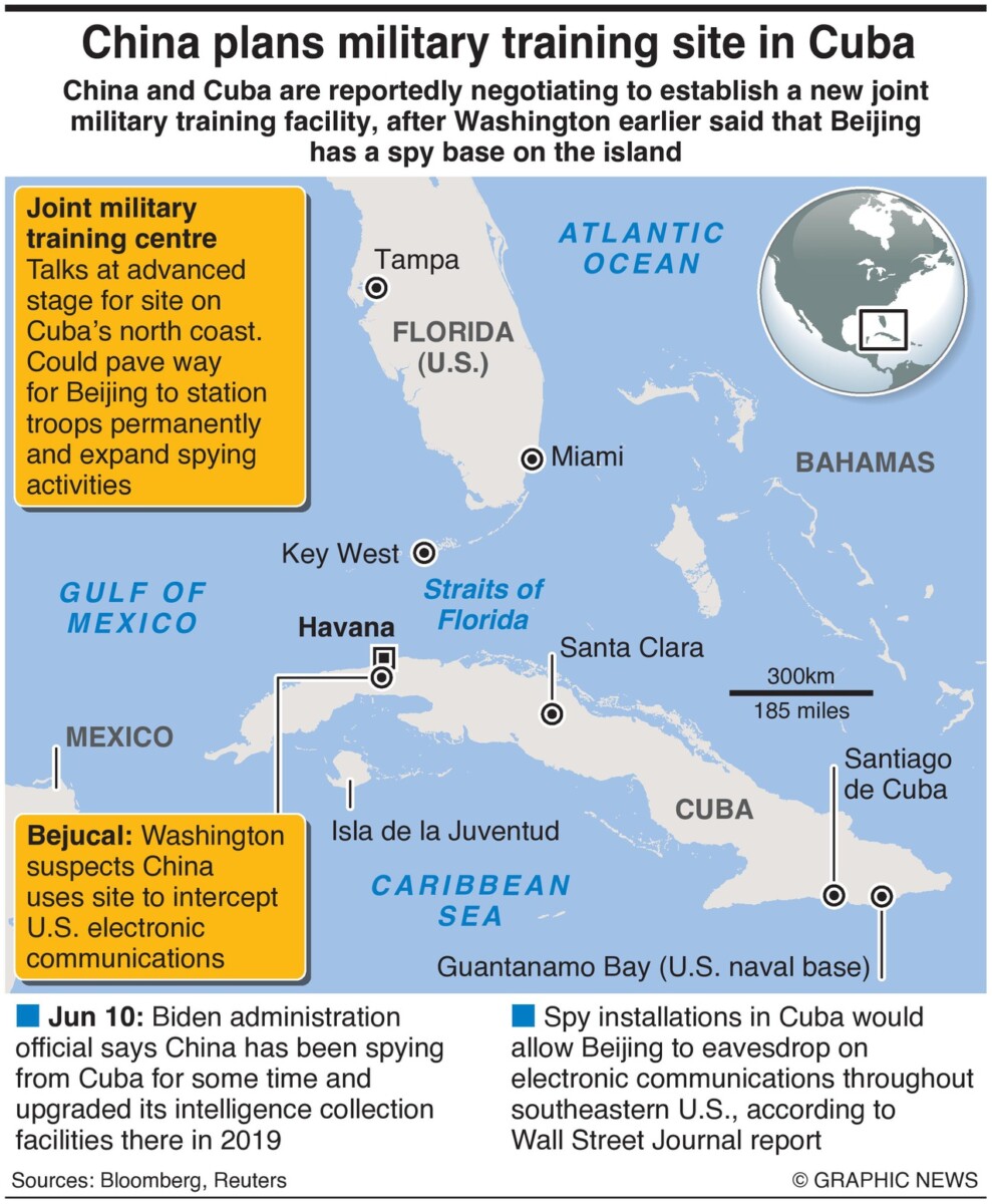 June 20, 2023 – China en Cuba zijn naar verluidt in onderhandeling over de bouw van een nieuwe gezamenlijke militaire trainingsfaciliteit, nadat Washington eerder zei dat Peking een spionagebasis op het eiland heeft.