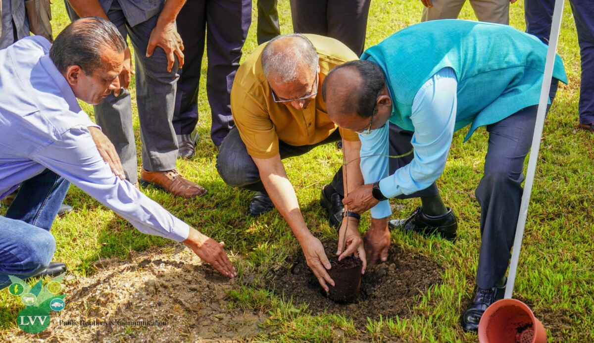 In de tuin van het ministerie van Landbouw, Veeteelt en Visserij (LVV) is maandag 19 juni een exemplaar van de kostbare Sandelhoutboom in de grond gestopt door de Indiase ambassadeur Shankar Balachandran en LVV-minister Parmanand Sewdien.