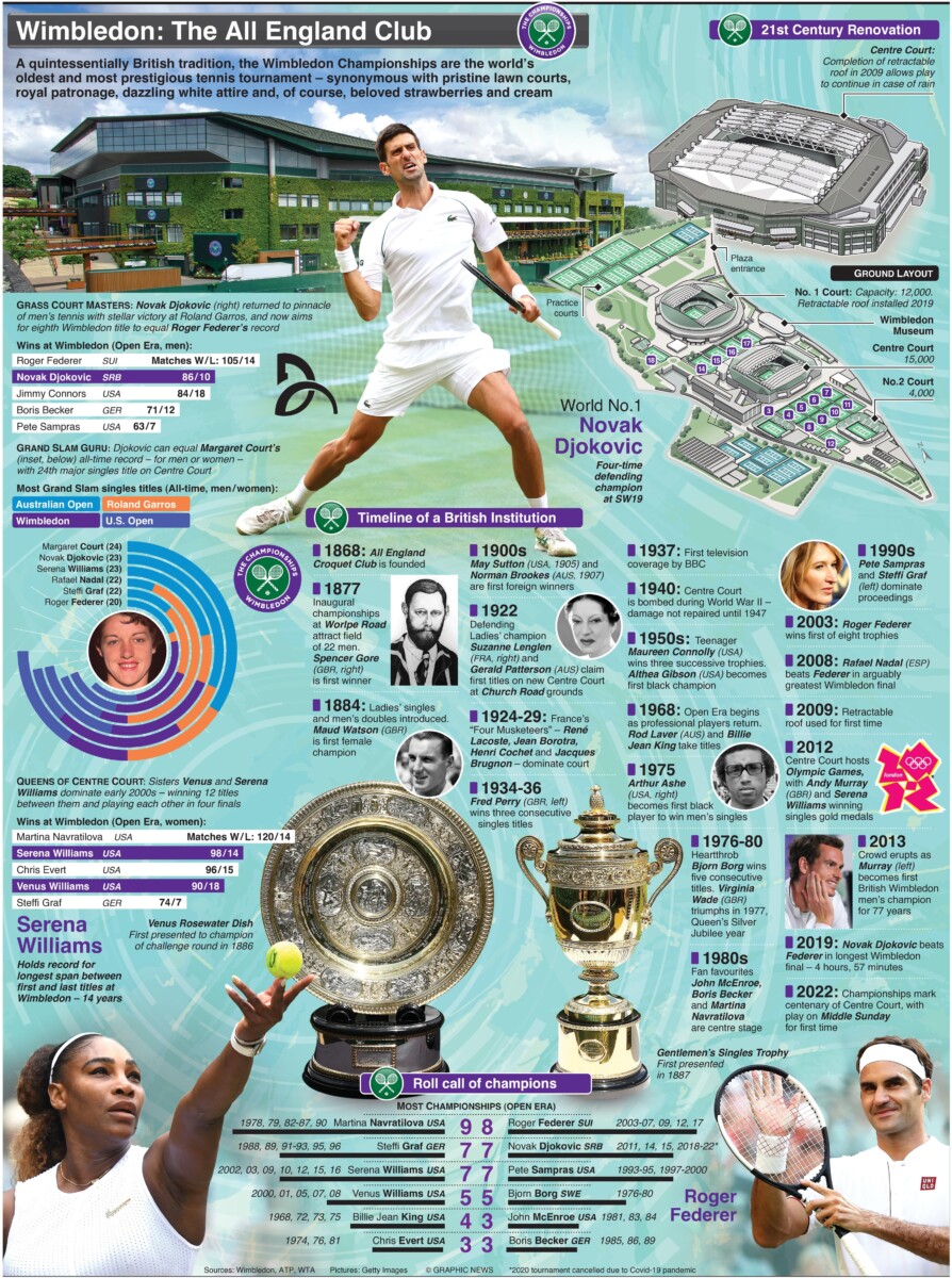 Centre Court heeft de introductie van televisie omarmd en bombardementen tijdens de Tweede Wereldoorlog overleefd. In 2012 werd het de eerste Grand Slam-locatie waar de tenniscompetitie op de Olympische Spelen plaatsvond.
